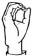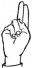 На ћирилици написано МИЛОМИРА ПАРТОН састоји се из 14 слова [?]. Исписано ћириличном једноручном азбуком за глувонеме: